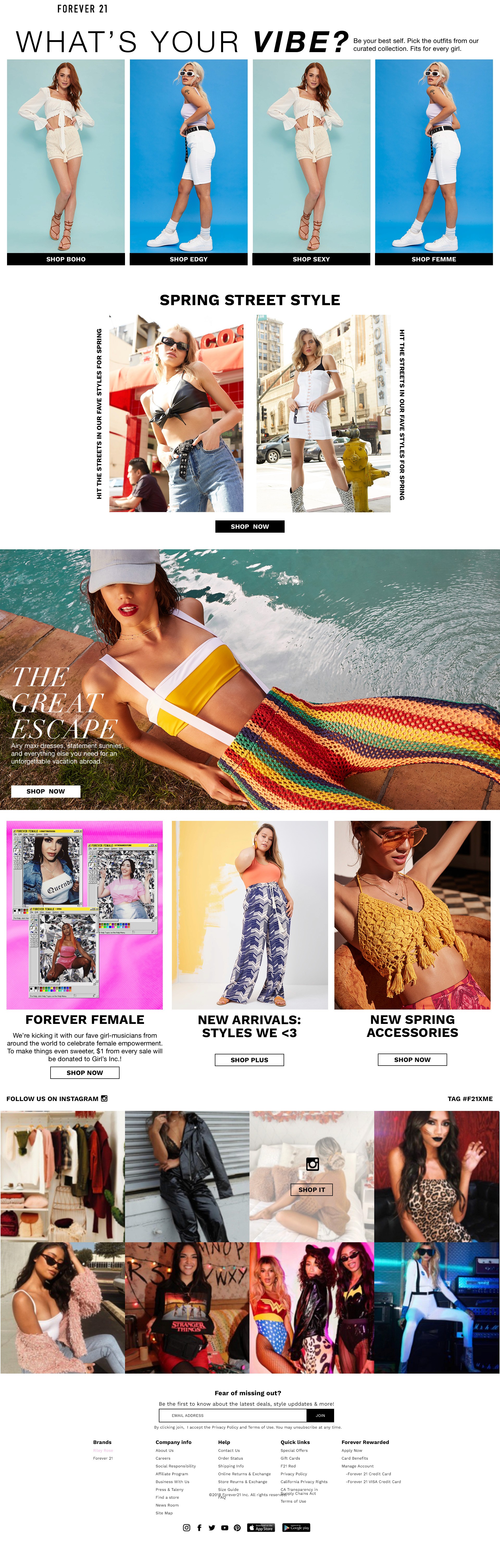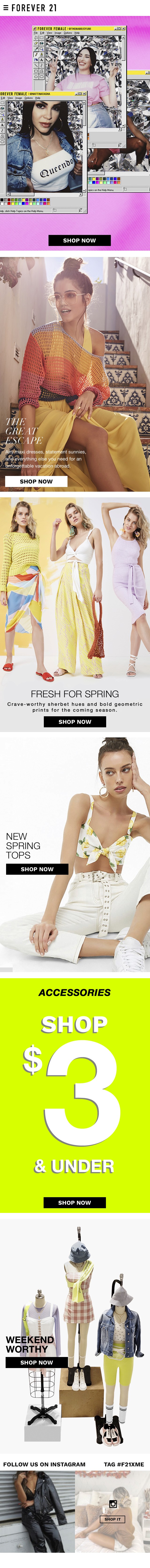 At Forever 21, I worked closely with the Creative Director to craft the overall design plan for both seasonal and evergreen digital content across the brand’s website and app. I led the design vision for these platforms while also managing two designers on the team—providing guidance, feedback, and ensuring alignment across all touchpoints. While leading the team, I remained hands-on, designing key pages and features that balanced trend-forward visuals with user-friendly functionality. From homepage refreshes to campaign-specific landing pages and in-app promotions, I ensured that every digital touchpoint was cohesive, responsive, and conversion-minded—always aligned with the brand’s evolving identity and retail calendar.